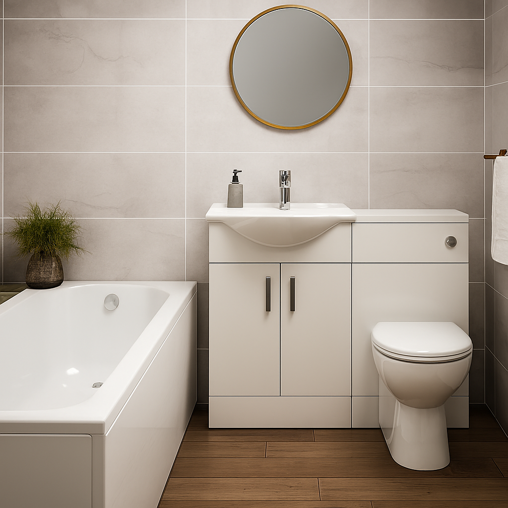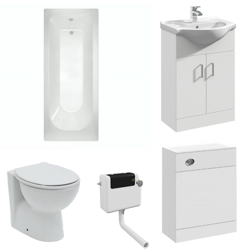 Complete Bathroom Suite – 1700mm Bath, White Furniture, Toilet & Basin