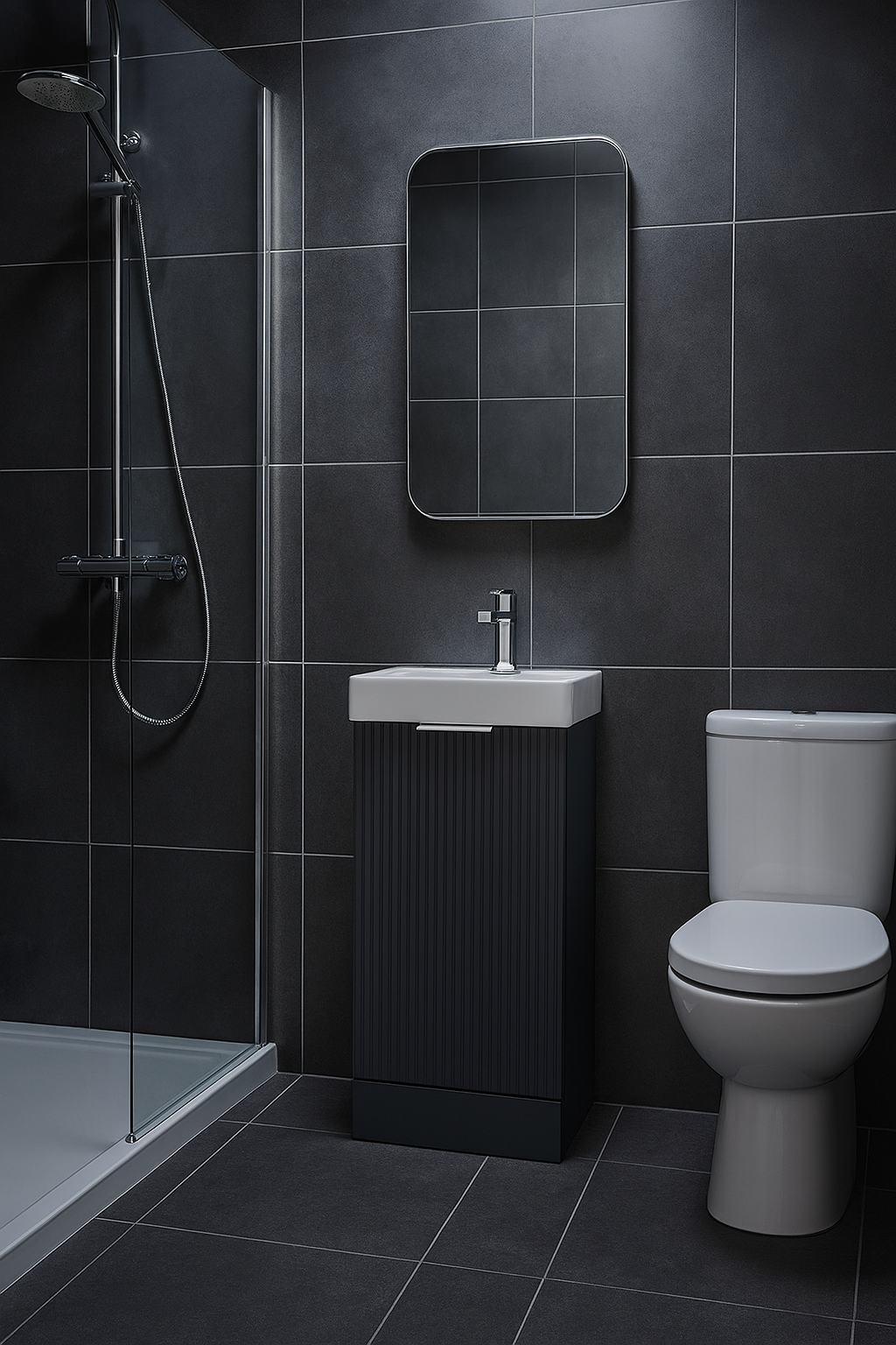 Nuie Fluted Soft Black Compact En-Suite Vanity & Basin